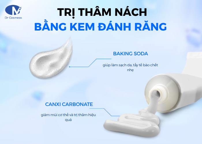 Trong kem đánh răng có chứa baking soda, canxi carbonate và chất kháng khuẩn nhẹ từ đó giúp làm sạch da, tẩy tế bào chết nhẹ và giảm mùi cơ thể. Tuy nhiên, nhiều chuyên gia da liễu khuyên rằng sản phẩm này không được thiết kế dùng để trị thâm nách và sử dụng ở vùng da nhạy cảm. Vì vậy việc sử dụng kem đánh răng cho vùng da dưới cánh tay dễ làm mất cân bằng pH, gây khô rát, bong tróc hoặc kích ứng.