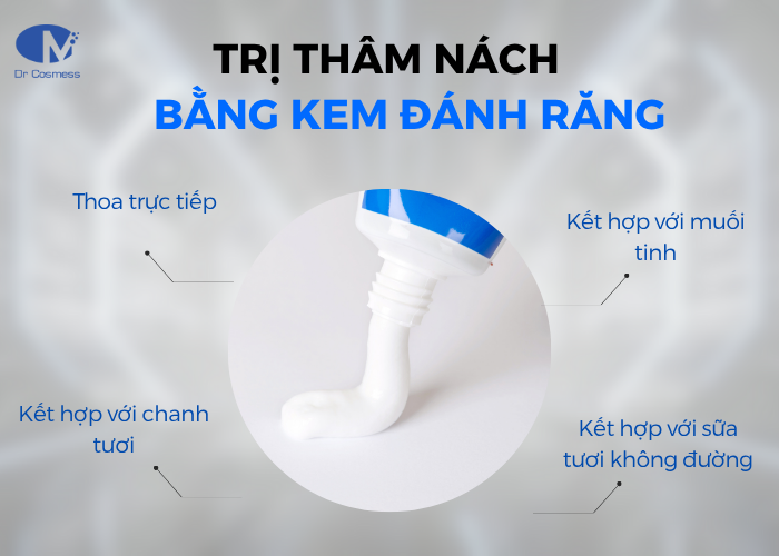 Trị thâm nách bằng kem đánh răng là phương pháp tạm thời, bạn có thể áp dụng peel da tại spa với Peel da vùng nách Dr Cosmess hoặc sử dụng liệu trình trị thâm tại spa bằng công nghệ hiện đại.