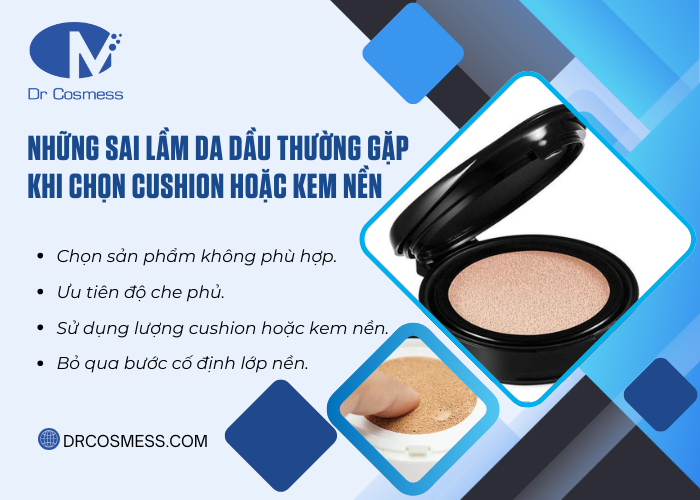 Dưới đây là những sai lầm phổ biến mà da dầu thường gặp khi lựa chọn cushion hoặc kem nền.