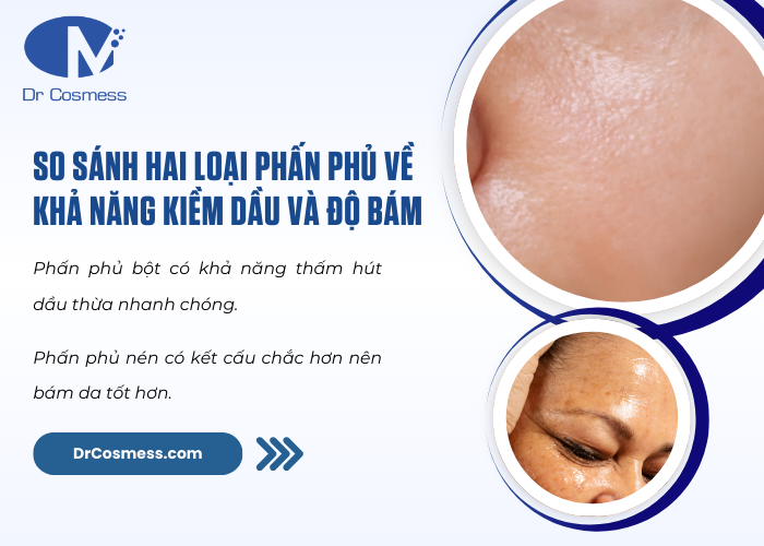 So sánh hai loại phấn phủ về khả năng kiềm dầu và độ bám