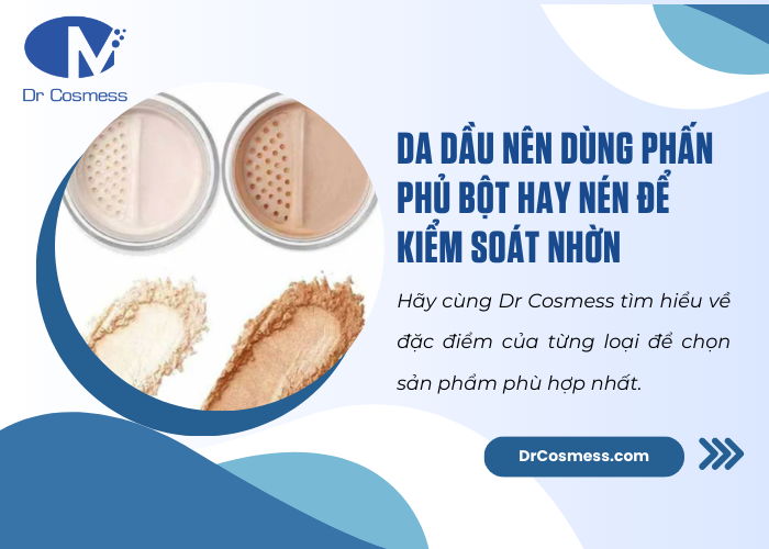 Da dầu nên dùng phấn phủ bột hay nén để kiểm soát nhờn? Đây là một trong những các câu hỏi làm cho nhiều người băn khoăn, chính vì vậy, để giải đáp thắc mắc này hãy cùng thương hiệu mỹ phẩm Dr Cosmess tìm hiểu trong bài viết dưới đây để hiểu rõ hơn về đặc điểm của từng loại và dễ dàng chọn được sản phẩm phù hợp cho mình nhé!