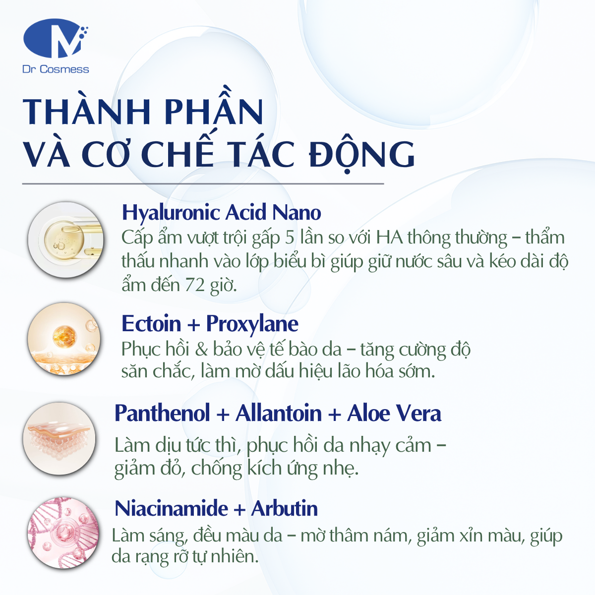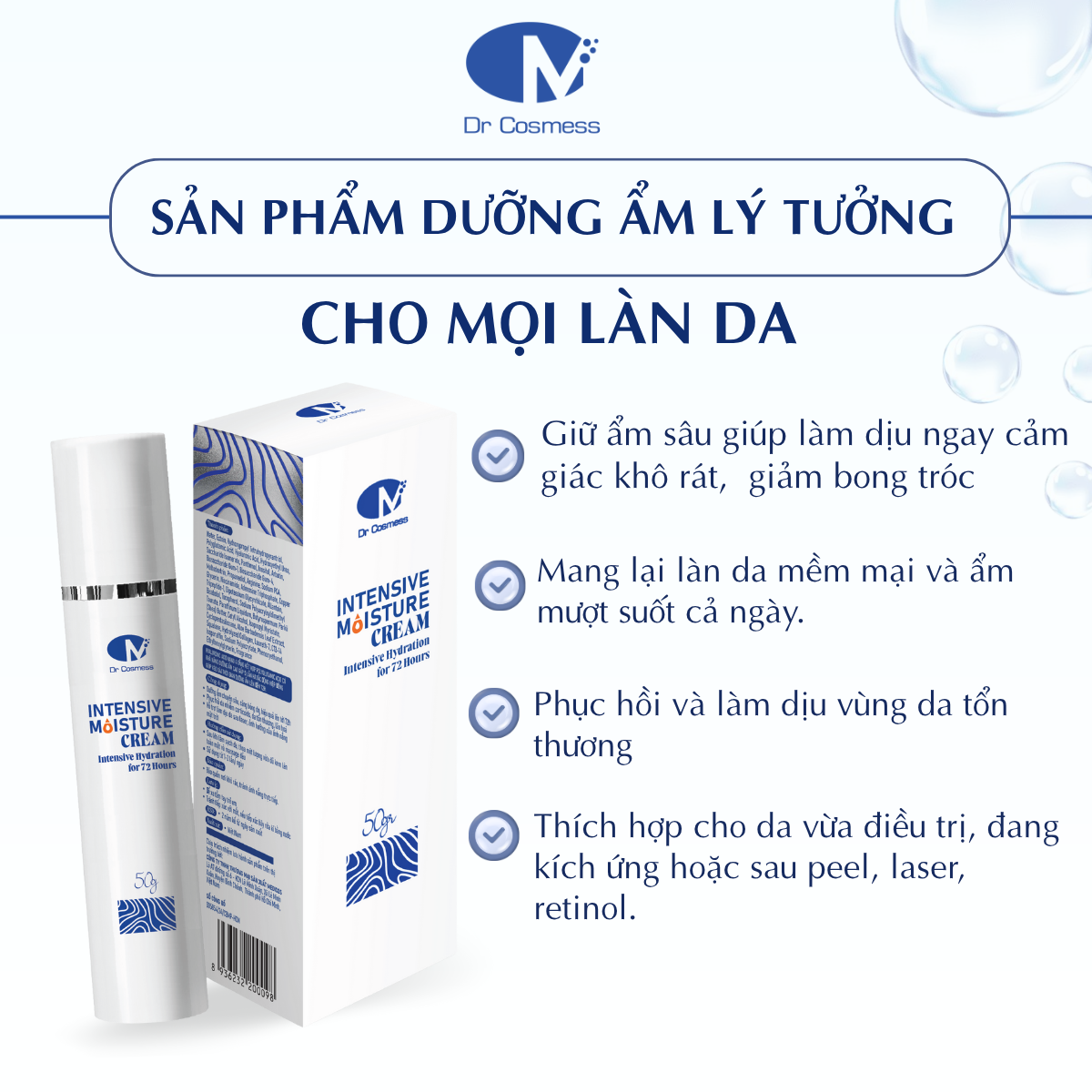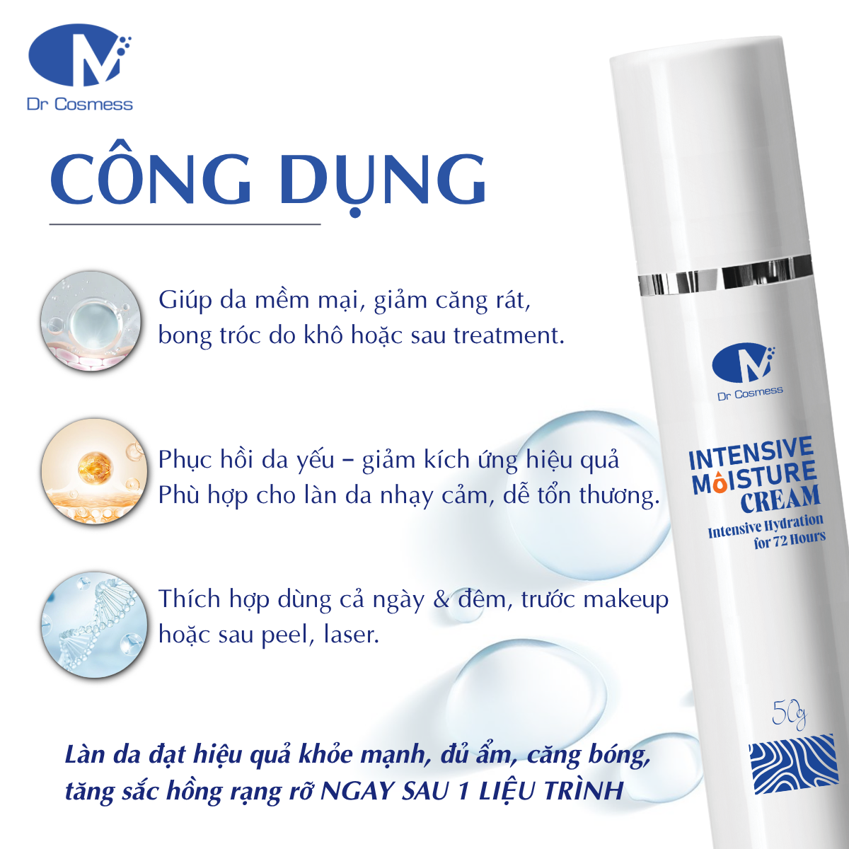 Kem dưỡng ẩm Dr Cosmess Intensive Moisture Cream đã được các bác sĩ da liễu nghiên cứu với nhiều công dụng nổi bật sau đây: