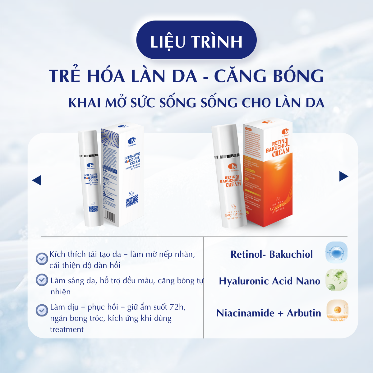 • Cấp nước và dưỡng ẩm cho da.