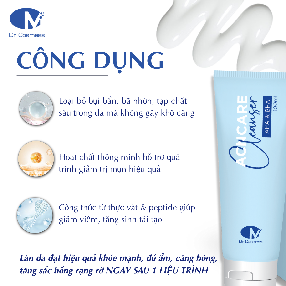 Công dụng chính Sữa rửa mặt Acncare Cleanser