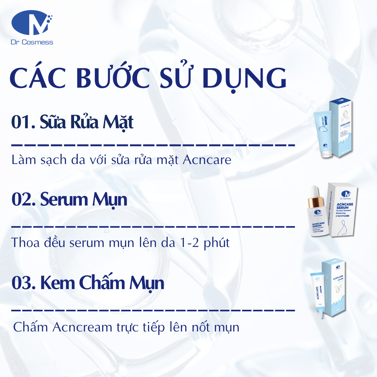 – Nếu da đang điều trị mụn, nên kết hợp với Acncare Serum hoặc Acncare Cream để dưỡng ẩm và phục hồi để tránh khô, bong tróc.