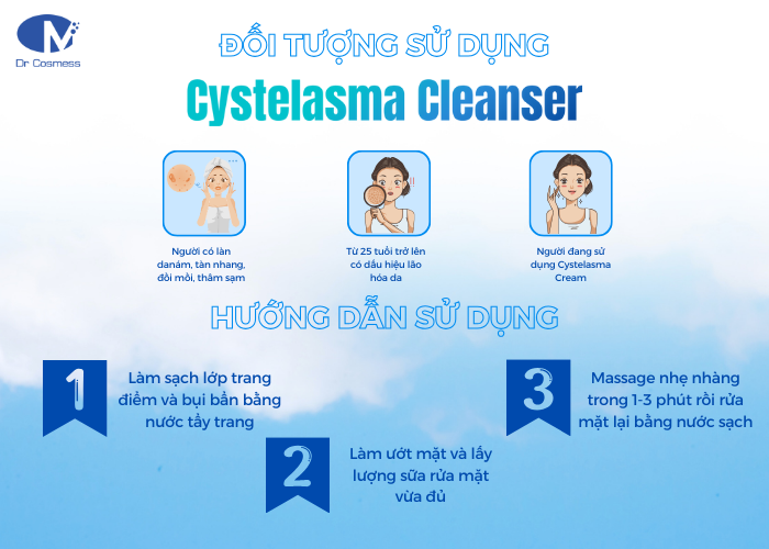 – Nên kết hợp Cystelasma Cleanser cùng bộ sản phẩm kem trị nám của Dr Cosmess để đạt hiệu quả cao nhất.